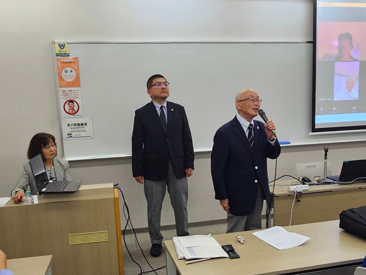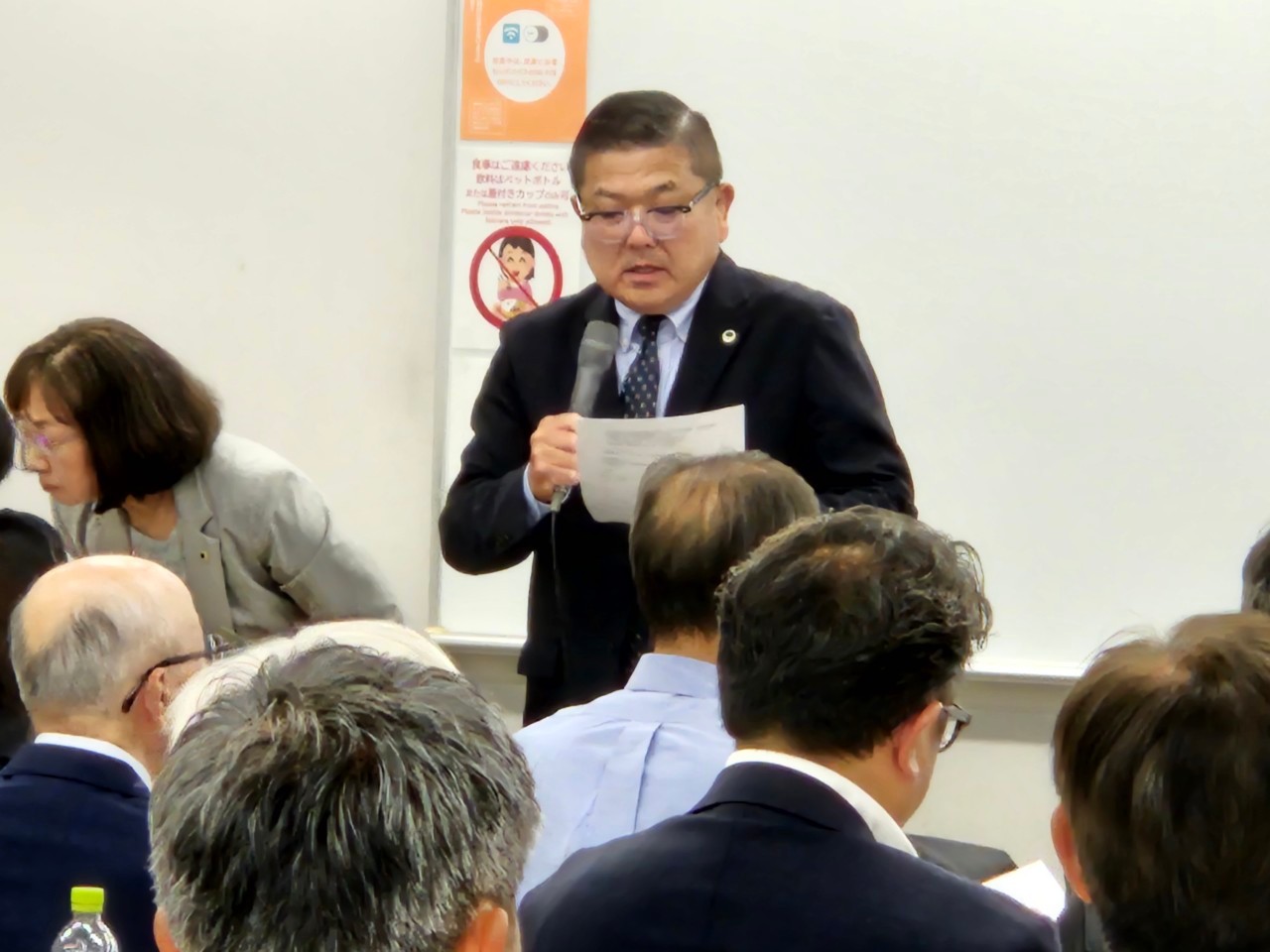 続けて、恒例の現役戦績報告、各OBOG会長からのクラブ自慢が披露されたあと、2024年度顧問就任の横山瞭一氏(1967年卒レスリング部OB)からご挨拶がありました。