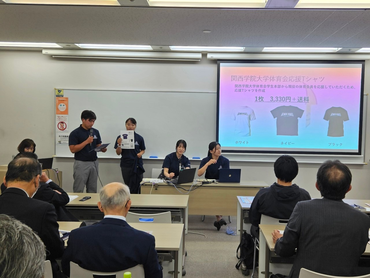 議事終了後は、体育会学生本部、総合関関戦実行委員から、総合関関戦のアピール、応援要請に加え、応援Tシャツ販売があり、熱戦への期待が高まりました。