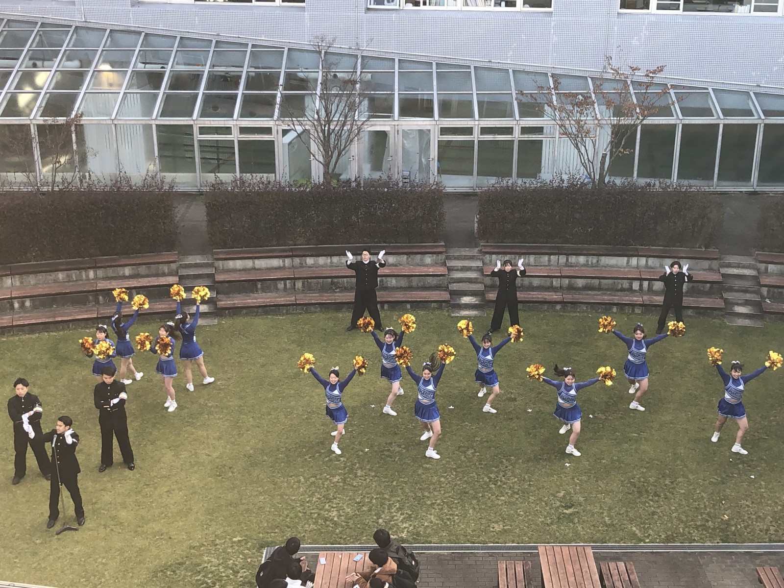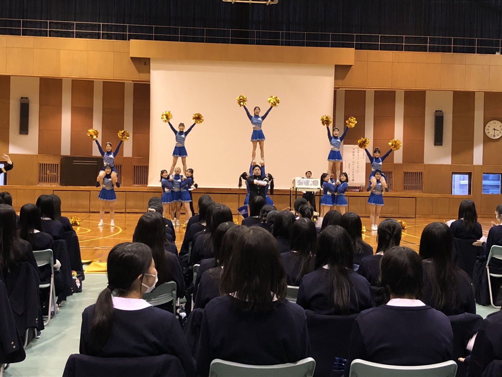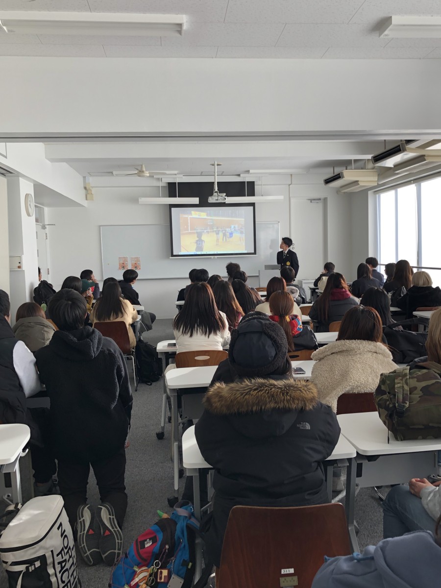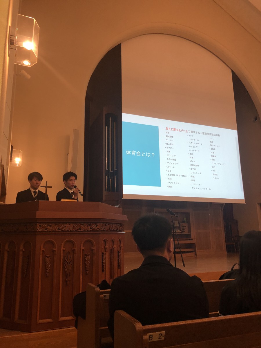 体育会活動の紹介動画、応援団総部(指導部・チアリーダー部)の演舞、体育会各部のプレゼンという形で行われました。