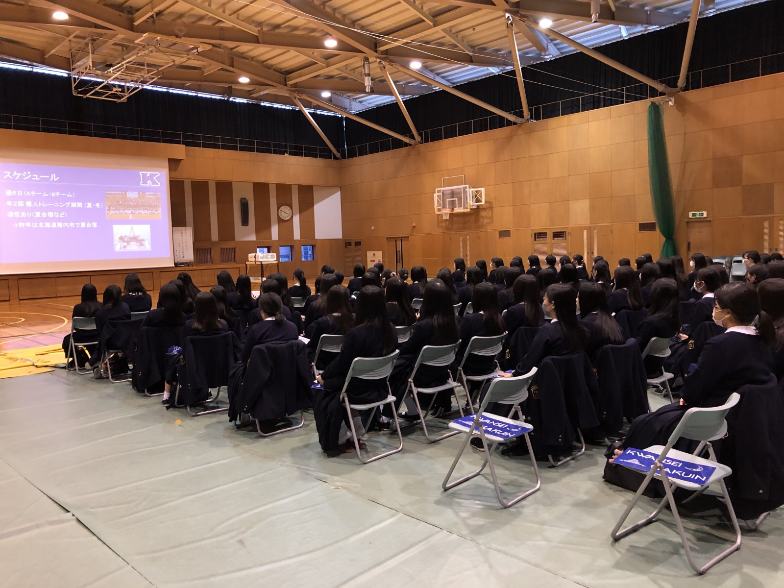 体育会43部の中には、高校生にはなじみのない競技も多くあり、参加した生徒のみなさんは時には歓声を上げ、目を輝かして演舞やスクリーンを見入っていました。